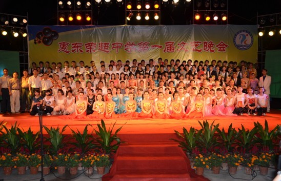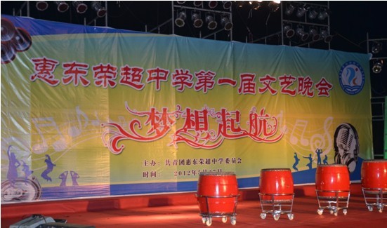 在晚會開始前,惠東榮超中學毛校長熱情地接待了我們,對我們的到來表示熱烈的歡迎和感謝。在會議室毛校長向我們介紹了學校的基本情況。他談到“榮超中學是一所年輕的高中,但老師隊伍起點高,老師在教育過程中突出特色和新的理念,落實打造學生們的思想道德培養(yǎng)。因?qū)W校致力搭造一個學生成長鍛煉的平臺,所以我們做了這一臺晚會,我們不光是學習,我們要綜合素質(zhì)都要提高。然后,通過這個平臺我們邀請了各初中學校的校長參加,讓他們深入學校了解榮超中學。最后,我們通過這臺晚會,向社會發(fā)出我們榮超中學的聲音,讓更多的人了解榮超中學。