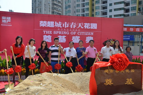 2012年10月24日,榮超地產(chǎn)位于深圳市福田南的榮超城市春天花園綜合體項目舉行了隆重的奠基盛典,來自榮超地產(chǎn)客戶、合作公司、業(yè)內(nèi)人士等眾多嘉賓及榮超全體同仁參加了開工儀式,共同見證了榮超地產(chǎn)這一喜慶時刻。