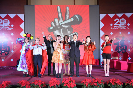 隨后,20周年新春文藝晚會精彩上演,這臺晚會圍繞公司20周年慶典,以“榮超幸福路、榮耀榮超心、榮超超越路、建美好榮超”為主題,出色演繹了時裝秀、歌曲串燒、舞蹈、小品、魔術(shù)等精彩紛呈的節(jié)目,贏得了現(xiàn)場同仁陣陣喝彩,充分展示了榮超人團結(jié)一心,多才多藝,朝氣蓬勃的精神風貌。晚會的最后,由一個驚喜的生日蛋糕帶動全場,董事長與榮超人一起唱響生日歌,提前祝榮超20周年生日快樂!晚會在生日祝福中圓滿落幕。
