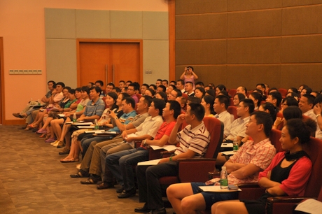 此次培訓(xùn)在國際商會中心四樓多功能會議廳進(jìn)行,由地產(chǎn)員工及物業(yè)公司中層以上員工共120人參與。