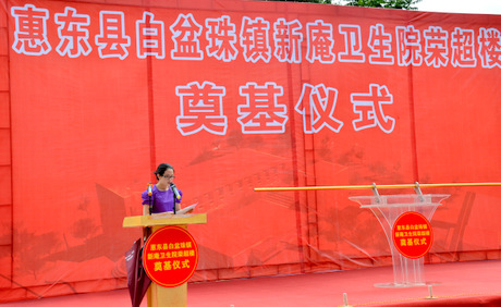 奠基儀式開始由惠東縣衛(wèi)生局局長(zhǎng)莊紹君致辭,他百感交集地表示 “十年前,作為惠東縣人民醫(yī)院院長(zhǎng),親歷了楊榮義先生無償捐資捐建的惠東縣人民醫(yī)院榮超樓的奠基儀式,十年后的今天,又作為縣衛(wèi)生局局長(zhǎng)再次見證了楊榮義先生捐資的新庵衛(wèi)生院榮超樓奠基,這既是歷史的機(jī)緣巧合也是楊榮義先生多年來一直熱心公益,為惠東醫(yī)療衛(wèi)生事業(yè)發(fā)展的無私奉獻(xiàn)?;仡^細(xì)數(shù),新庵衛(wèi)生院榮超樓已是楊榮義先生在我縣醫(yī)療衛(wèi)生系統(tǒng)無償捐建的第三座榮超樓?!弊詈笏砣h衛(wèi)生系統(tǒng)的干部職工對(duì)楊榮義先生的善舉表示衷心的感謝。