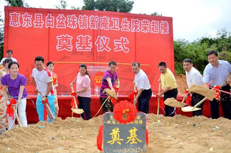 8月14日上午,陽光沖破雨水,展露晴朗。由我司董事長(zhǎng)楊榮義捐資1000萬元的惠東縣白盆珠鎮(zhèn)新庵衛(wèi)生院榮超樓正式奠基。董事長(zhǎng)楊榮義及夫人梁碧玉、總經(jīng)理?xiàng)顦s光、榮超慈善基金會(huì)副會(huì)長(zhǎng)楊穎婷、楊超等參加了奠基儀式,并與惠東縣關(guān)聯(lián)的領(lǐng)導(dǎo)班子及參與新庵衛(wèi)生院榮超樓建設(shè)的相關(guān)人員共同見證了這一造福民眾的喜慶時(shí)刻。