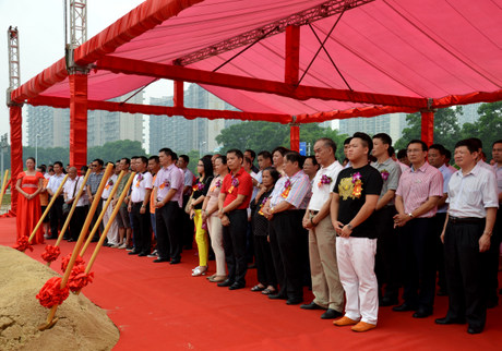 最后,楊榮義先生宣布:“榮超新成大廈正式奠基”,在彩旗飄逸,禮炮轟鳴和音樂伴奏的氛圍下,大家同擎金鍬,揚土培基。