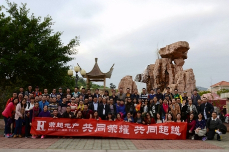 清晨的陽光還夾雜著朦朧,兩輛豪華巴士裝載著百十號人的團(tuán)隊從深圳中心出發(fā)一路向東。美麗的金導(dǎo)恪盡職守,用她清爽的嗓子拉起了桂林山歌。嘿,什么水面打跟斗嘞,嘿啰啰嘞;什么水面起高樓嘞;什么水面撐陽傘嘞,什么水面共白頭嘞……城市春天項目部的黃飛鵬被同事們推上了“船頭”與“劉三姐”對起了山歌,只因年輕帥氣的黃飛鵬平時工作沒有商量,此時面對漂亮大方的“劉三姐”金導(dǎo)一時言盡詞窮,臉紅如關(guān)公,沒幾句便敗下了陣。窗外沿途的風(fēng)景如畫一閃而過,窗內(nèi)一陣掌聲引來一陣喝彩,快樂相伴著我們一路前行。