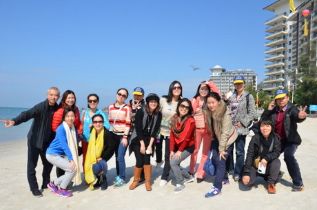 行程安排一路人馬自由活動觀看天后宮,一路人馬踩組合單車。而風(fēng)景最美莫過于踩組合車了,單人車無所稀奇,而兩人組四人組的車卻讓同事們樂在其中,驚叫與歡樂不斷,騎的有動感的快樂,坐車的靜觀小街大巷的舒適。途徑巽寮灣的沙灘,海岸線的風(fēng)景確讓人難忘,腳下是柔軟細(xì)膩的沙石,一灣淺藍(lán)色海港,為馬祖出游祈福平安的隆隆炮聲,一幢幢豪華富麗的星級酒店,身邊迫不及待擺上幾款POSE留下美麗瞬間的同事們,有些小瘋狂的購物,此時此景讓人恍如身入他國,感嘆在我們身邊居然也有如此美景。