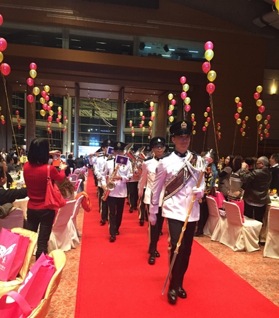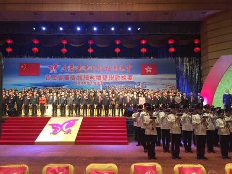 典禮現(xiàn)場(chǎng)隆重輝煌,場(chǎng)面盛大。隨著警察樂隊(duì)吹響進(jìn)場(chǎng)歡迎曲,各領(lǐng)導(dǎo)嘉賓及會(huì)董成員依次入場(chǎng)至主席臺(tái)合影留念。參加典禮的有中央和廣東省轄下市有關(guān)機(jī)構(gòu)領(lǐng)導(dǎo)、特區(qū)政府官員、立法會(huì)議員、港區(qū)人大代表、政協(xié)委員、各界翹楚,以及會(huì)員鄉(xiāng)親,他們歡聚一堂,喜氣洋洋,共同見證會(huì)董就職。楊榮義董事長榮膺香港惠東同鄉(xiāng)社團(tuán)總會(huì)榮譽(yù)會(huì)長,并在就職典禮現(xiàn)場(chǎng)捐款500萬元,為同鄉(xiāng)社團(tuán)文化,香港繁榮及家鄉(xiāng)興旺貢獻(xiàn)力量。就職典禮現(xiàn)場(chǎng),楊榮義董事長受到香港行政長官梁振英等重要與會(huì)領(lǐng)導(dǎo)的接見,并與他們合影留念。
